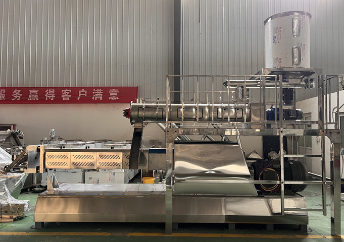 整條生產(chǎn)線(xiàn)從混合、擠壓、干燥、調(diào)味到成品自動(dòng)化。只需2-3人即可操作。