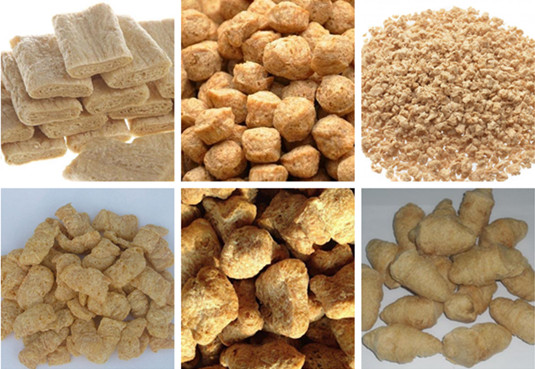 組織蛋白生產機器采用低溫脫脂豆粕、濃縮蛋白、分離蛋白、谷朊粉等為原料,可生產顆粒、柱、塊、片, 糠等形狀的蛋白產品, 用于素食、低脂、高蛋白的食品。組織蛋白可以代替肉添加到肉制品中,不僅能提高肉制品的蛋白質含量,又能吸收多余的脂肪,使其不油不膩而更顯肉感。大豆組織蛋白可制成各種風味的方便食品,絲狀、片狀蛋白產品直接用于制做素食仿肉食品。